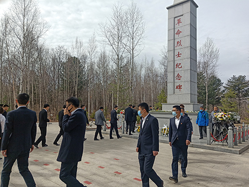 全體同志神情凝重,步履莊重地在烈士紀念牌前排成整齊的隊伍,通過敬獻花圈、肅立默哀,瞻仰烈士紀念牌等方式表達對革命先烈的無線懷念和崇敬之情。