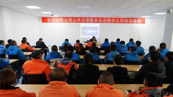 10月18日下午,公司邀請長白山司法局法律糾紛調(diào)解中心王主任以及吉林省法律援助中心楊律師在公司三樓會議室開展了公共法律服務(wù)“天池和”APP宣傳講解培訓(xùn)以及如何處理應(yīng)對突發(fā)暴力事件。景區(qū)一體化各部門經(jīng)理、班組長、投訴處理人員,以及旅行社、酒店和溫泉相關(guān)人員,共80余人參加培訓(xùn)活動。