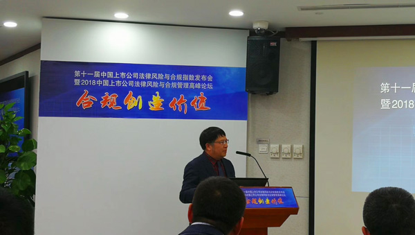 2018年10月20日,由法制日報社與中國政法大學(xué)聯(lián)合舉辦的“第十一屆中國上市公司法律風(fēng)險與合規(guī)指數(shù)發(fā)布會”在北京仲裁委員會舉行。