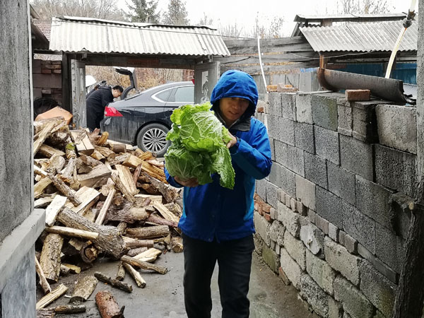 根據(jù)走訪了解的實(shí)際情況,為幫助車德慶一家度過一個(gè)溫暖冬季,黨支部專門開會(huì),決定將本次扶貧活動(dòng)擴(kuò)大到群團(tuán),通過微信群廣泛調(diào)動(dòng)公司機(jī)關(guān)黨員、群眾的扶貧熱情。大家各盡所能,積極捐款、捐物,奉獻(xiàn)愛心,貢獻(xiàn)力量。11月8日中午12點(diǎn),冰冷的小雨持續(xù)不斷,公司機(jī)關(guān)黨支部黨員和職工群眾8人來到貧困戶家中,冒著綿綿冬雨裝卸燒柴3.5立方米、冬儲(chǔ)菜200斤,帶去冬季衣物、豆油等物品,把集體的溫暖和愛心送到車德慶家中。