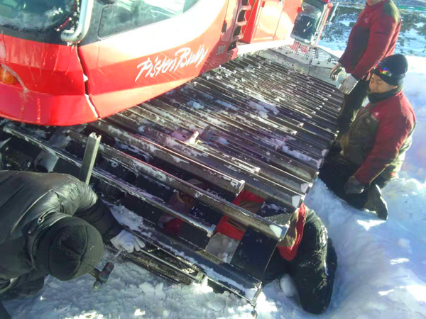 11月16日清晨,雪地車在長(zhǎng)白山北主峰公路黑風(fēng)口清雪作業(yè)時(shí),出現(xiàn)前拐軸折斷故障,無(wú)法繼續(xù)正常作業(yè)。北景區(qū)檢修部接到報(bào)告后,迅速抽調(diào)經(jīng)驗(yàn)豐富的檢修技工攜帶搶修工具和配件前往現(xiàn)場(chǎng)展開維修。