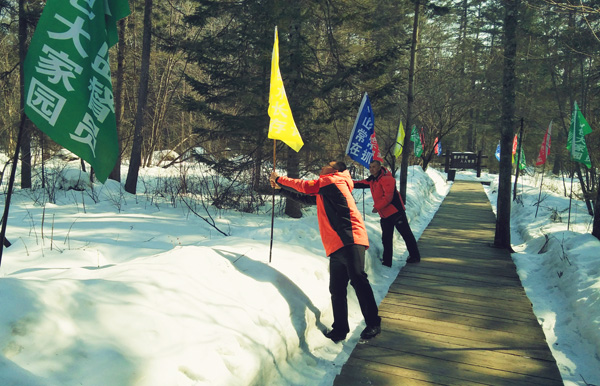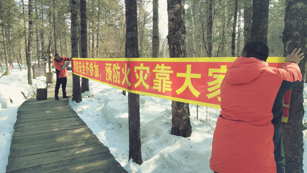 廣泛宣傳,嚴控火源入?yún)^(qū),利用西山門和池西游客服務(wù)中心的LED屏等多媒體循環(huán)播報、播放森林防火標(biāo)語,在各景點醒目位置張貼防火命令、懸掛防火條幅、防火旗;門區(qū)安檢處、長白山大峽谷入口處設(shè)置煙火寄存箱,嚴控火種入?yún)^(qū),并設(shè)專人進行防火宣傳,語音全天候循環(huán)播報禁煙禁火提示,加強宣傳禁止野外用火的規(guī)定,全面營造“森林防火,人人有責(zé)”的氛圍。