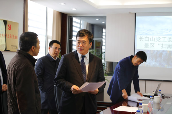 2019年3月31日上午,長白山管委會紀(jì)檢監(jiān)察工委張廣輝書記一行,長白山景區(qū)開展調(diào)研掃黑除惡工作,并與公司掃黑除惡相關(guān)工作人員進(jìn)行座談。公司分管掃黑除惡工作的高管和各部門負(fù)責(zé)掃黑除惡的中層、主管16人參加調(diào)研。公司紀(jì)委書記紀(jì)景臣、副總經(jīng)理孫青春、黨群部部長張光輝對開展掃黑除惡相關(guān)工作進(jìn)行了匯報(bào)。