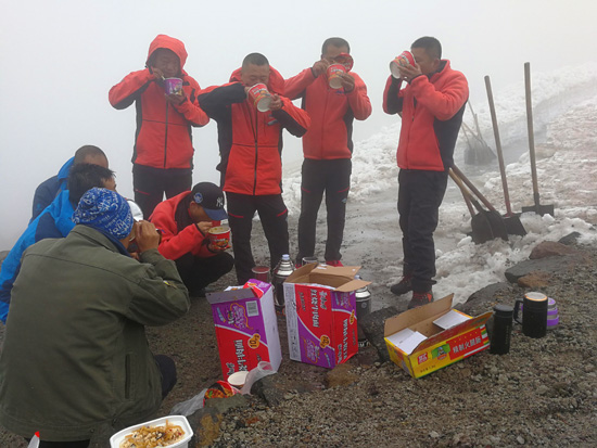 通往主峰的道路蜿蜒崎嶇,路邊的山體嶙峋陡峭,厚達(dá)4—5米的積雪綿延10多公里,陡峭的山體不時(shí)有碎石滾落,面對(duì)如此艱巨的工程,南景區(qū)員工迎難而上,勇往直前,再一次發(fā)揚(yáng)了能吃苦、不怕累、打勝仗的決心和意志。員工們起早貪黑、櫛風(fēng)沐雨,短短一周的時(shí)間里,10多公里的積雪在清雪車的轟鳴中被一層層的剝離清理。5月11日,通往主峰天池停車場(chǎng)的道路全線貫通。