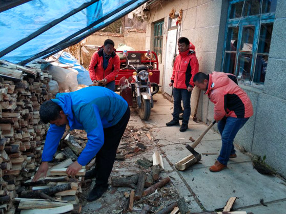 在看到整齊的柴火垛和整潔的院落,老人高興地留下感激的淚水,直說“還是共產(chǎn)黨好啊”!程國防經(jīng)理安慰老人說“大娘,您孩子不在家,以后有這樣的活您別擔(dān)心,有我們呢,支部會常來看您的”。