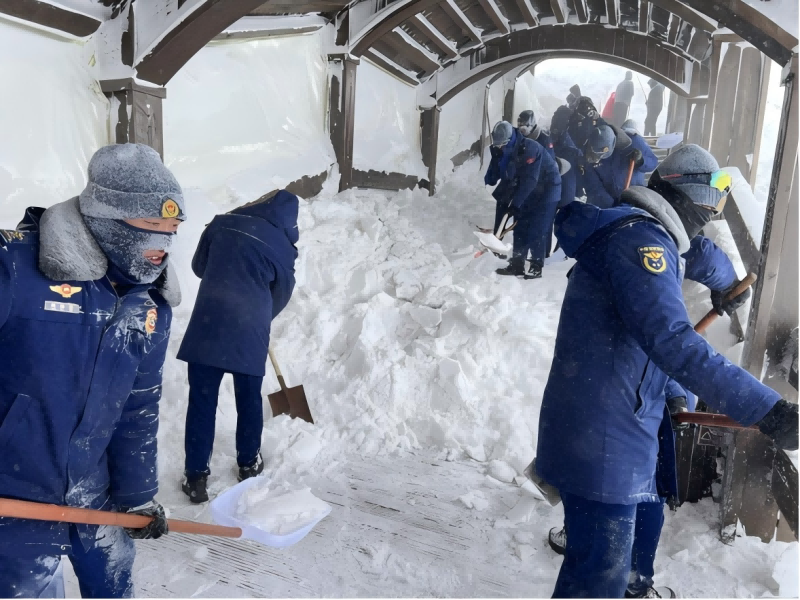 當(dāng)各個(gè)責(zé)任區(qū)全線貫通,候車回廊、登山臺(tái)階顯露出真容,兩側(cè)近2米高的雪墻和那早已被汗水浸濕又凍結(jié)成冰的棉襖,已然成為長(zhǎng)白山西南景區(qū)運(yùn)營(yíng)黨支部最鮮活的黨建成績(jī)單。