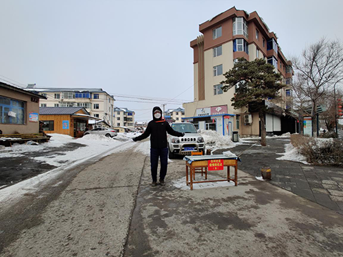 為克服嚴寒,黨員同志通過跳繩,原地踏步等方式取暖。大家勇于擔(dān)當(dāng),始終默默地堅守在防控一線,盡職盡責(zé)。